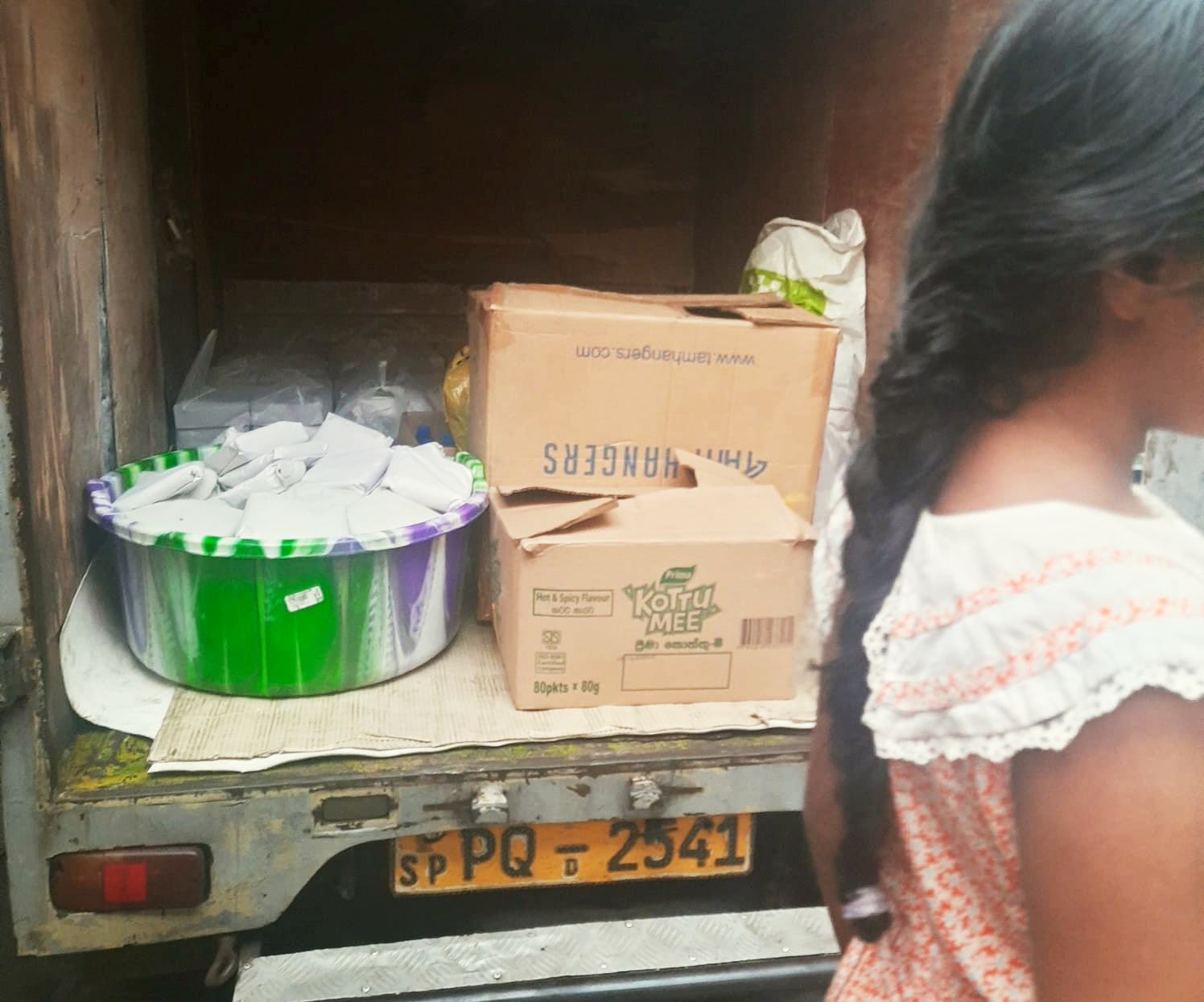 "Heute haben wir Lebensmittel nach Colombo gebracht. Wir waren in Sapugas Kanda im Bezirk Biyagama in Colombo. Dort hatten sie viele Trockenlebensmittel erhalten, aber sie sagten, es sei schwierig für sie, diese zuzubereiten und zu essen, da alle Häuser bereits überflutet waren. Es gab kein Kochgeschirr mehr. Alles war im Wasser versunken. Sie sagten, selbst das, was sie hatten, sei schmutzig gewesen. Sie aßen unser Essen sofort, sobald sie es bekamen. Wir konnten etwa 350 Lebensmittelpakete übergeben. Sie sagten, sie hätten in den letzten Tagen keinen Reis bekommen. Sie hätten Brot, Brötchen und Kekse gegessen. Auch unsere Kleiderspenden nahmen sie dankbar an. Sie sagten, viele Menschen trügen seit Tagen dieselbe Kleidung. Alle waren sehr dankbar für unsere Hilfe." So sieht es gerade in diesem Gebiet aus:
