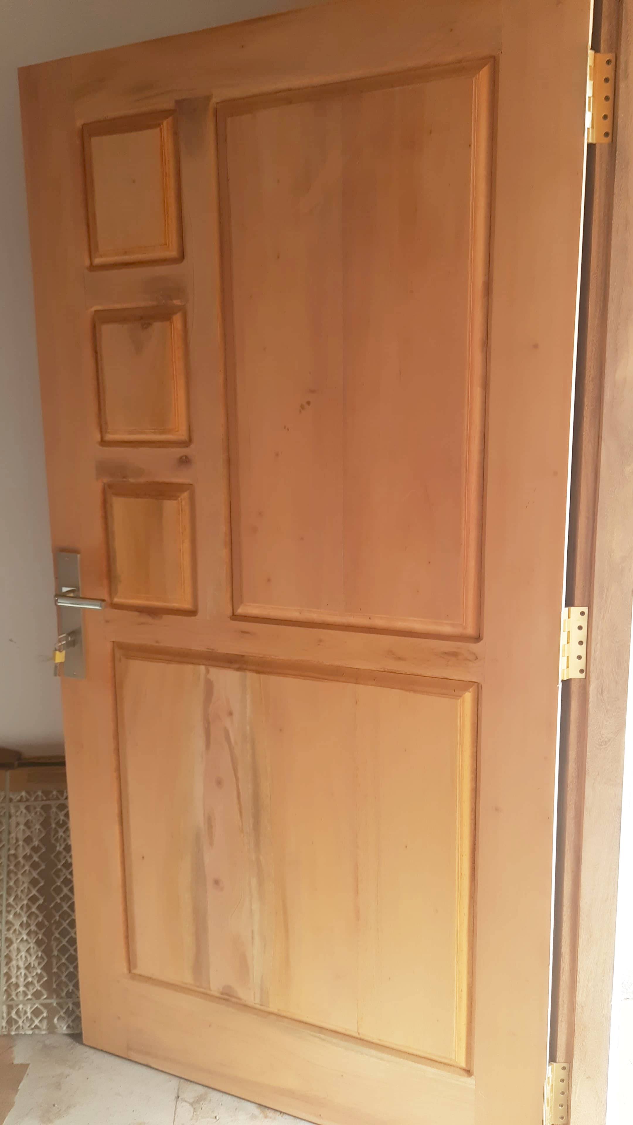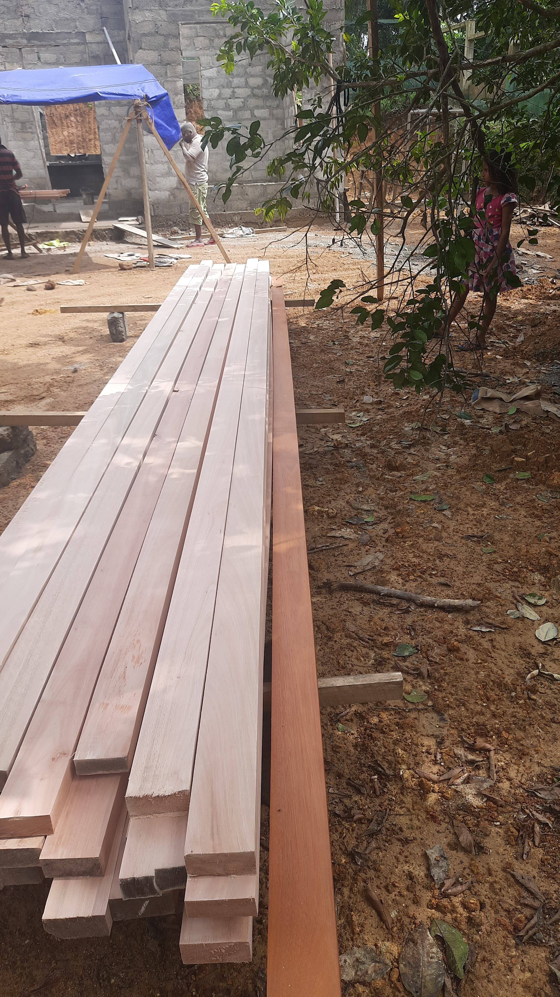 Das Holz unserer großen Bäume, die zuvor am Hang gefällt wurden, konnten wir für die Fenster und Türen im Haus verwenden. Auf dem Dach steht ein 500 Liter Wassertank, in den das Trinkwasser aus dem neuen Brunnen gepumpt wird.