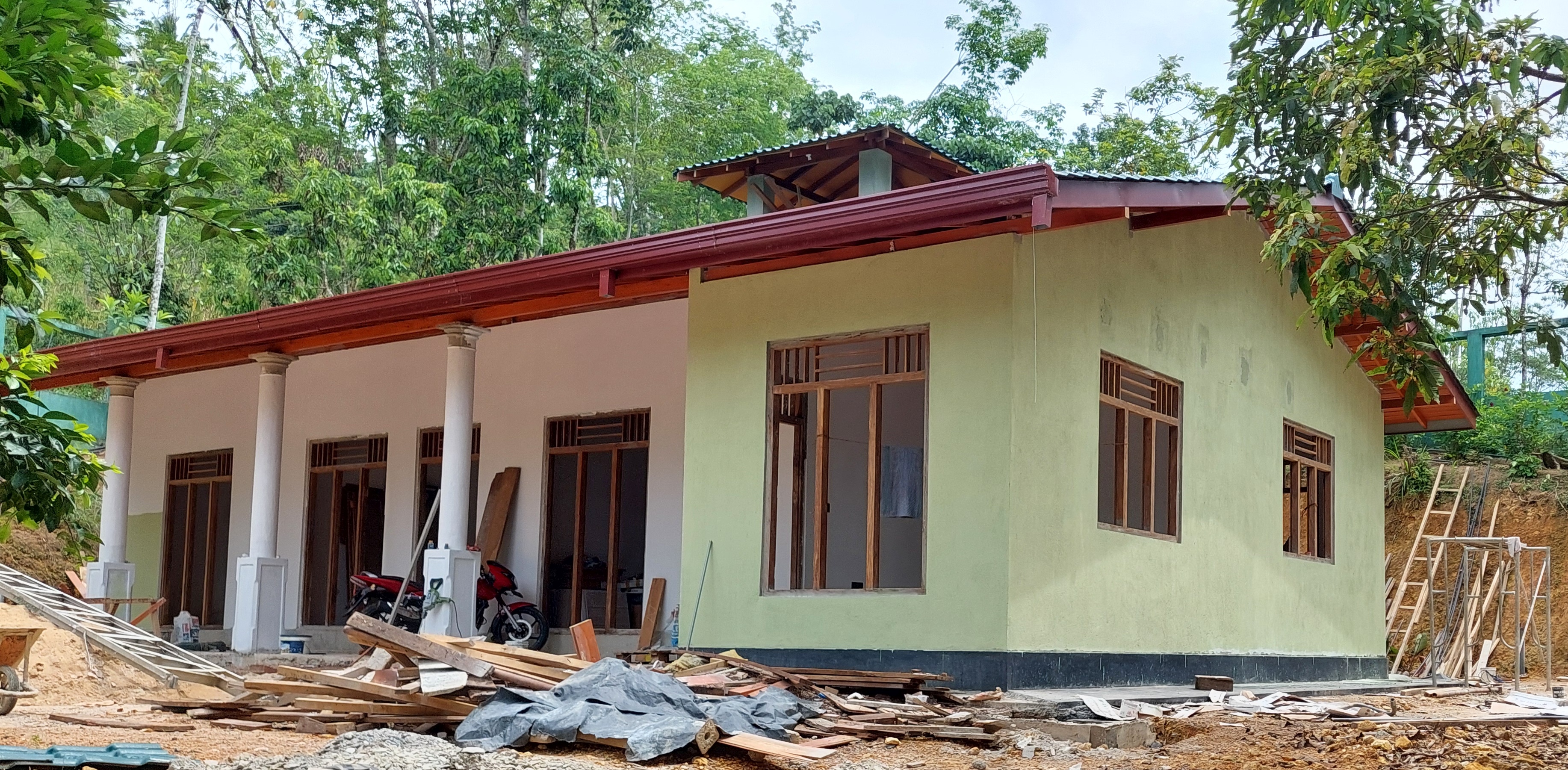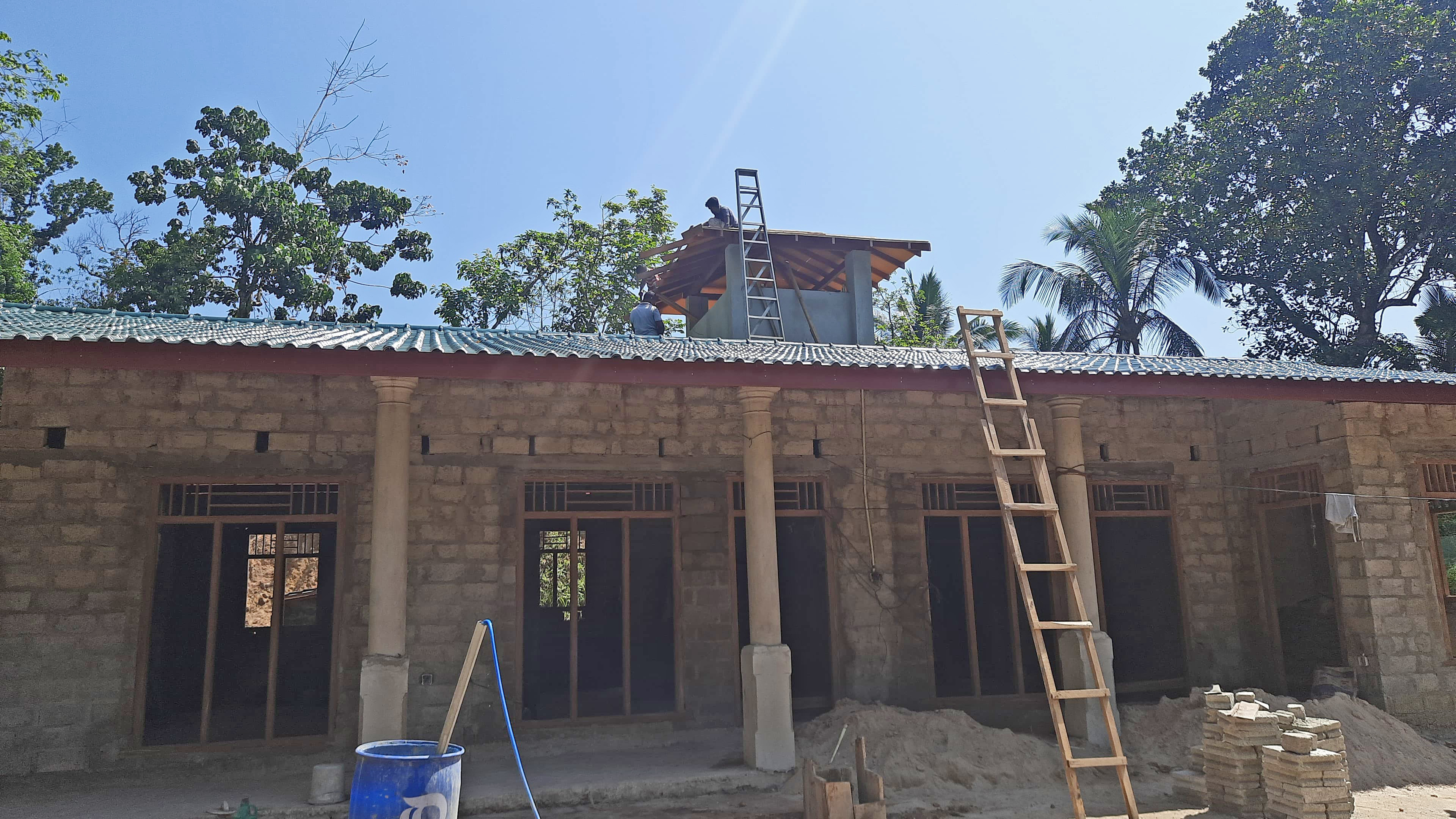 Bereits nach der Corona-Pandemie hatte uns das Department of Probation and Child Care Services in Galle zur Auflage gemacht, für den Fall einer neuen Pandemie ein zusätzliches Gebäude zu errichten, in dem kranke Kinder isoliert untergebracht werden können. Wie immer kommen solche Auflagen ohne Vorankündigung durch die Behörde und nehmen keine Rücksicht auf unsere finanzielle Ausstattung. Für ein solches Gebäude haben wir auf unserem Grundstück nur auf der anderen Straßenseite genug Platz. Dort hatten wir einen großen Sportplatz, den wir für diese Baumaßnahme opfern mussten. Es gibt aber noch genug Freifläche, auf der Spielgeräte für die Kinder stehen.