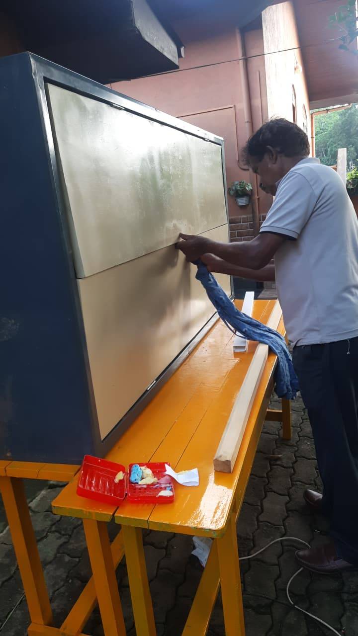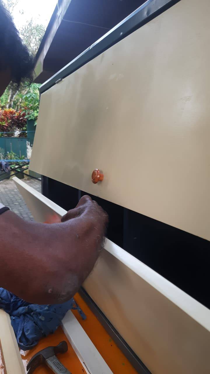 Sri Lanka werden in diesen Monaten alle Kinderheime klassifiziert. Um bei dieser Bewertung gut abzuschneiden, haben wir das Chathura-Kinderheim nochmals gründlich auf Sauberkeit und Funktionalität überprüft. Mängel, die uns aufgefallen sind, wurden behoben. Unser Verwalter Amarathunga hat die defekten Türen an den Kleiderschränken durch neue Holztüren ausgetauscht.