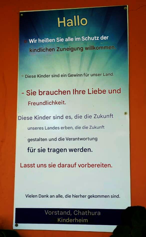Mit diesem Eingangsschild werden Besucher im Chathura-Kinderheim begrüßt: